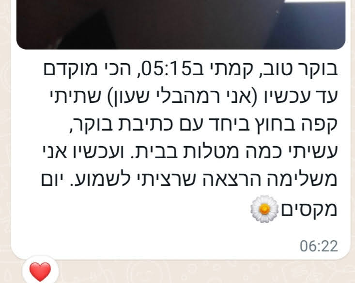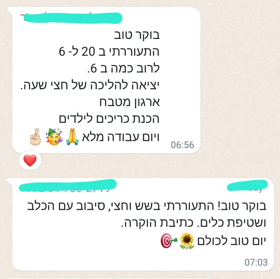 בכל בוקר הקבוצה תיפתח בין 5:30-8:00 לשיתופים שלכן והרמות בוקר טוב לכולם!