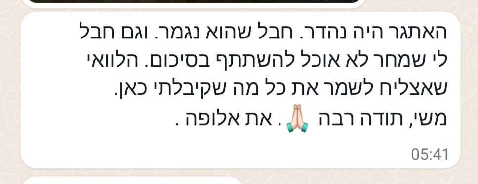 משימות האתגר יתקיימו בתוך קבוצת ווצאפ פרטית שלנו.