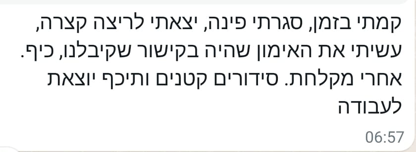 בתור אחת שהייתה גונבת עוד 5 דקות במיטה בכל מחיר (הו… והיו מחירים), אני מזדהה עם הקושי הזה בכל רמ”ח אבריי.